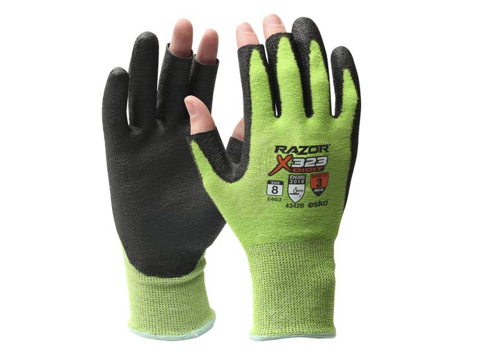 - Razor Digit fingerless glove with open thumb, fore and index fingertips, gives excellent touch dexterity for intricate work