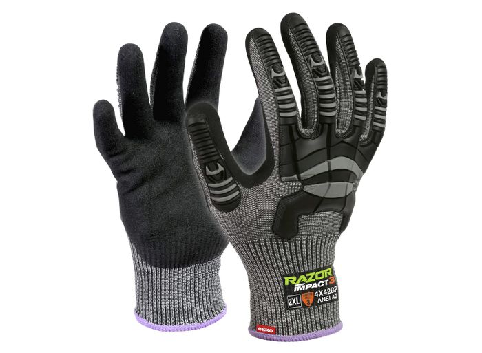 - Esko Razor Impact3 Gloves Cut Resistant Level B Sandy Nitrile Coating TPR Impact Protection