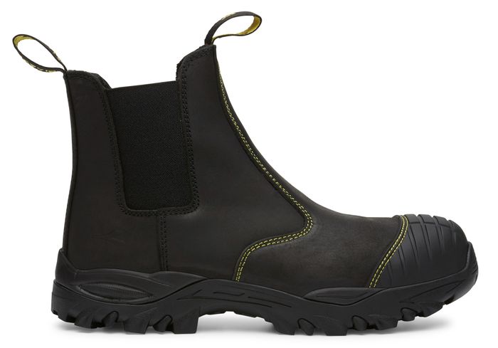 This anti-penetration kevlar lined, water resistant safety boot is a great option for a variety of environments. It has features galore with a water resistant nubuck upper, lightweight 200J impact resistant composite toe cap, phylon midsole for enhanced cushioning, external TPU scuff resistant bump cap for increased durability, a padded PU insole with Anti-Static properties and nitrile rubber outsole that is resistant to 300°C. The Craze Slip on has a Kevlar insole for protection from sharp things under your feet with an outsole with slip resistant properties and heel energy absorption.