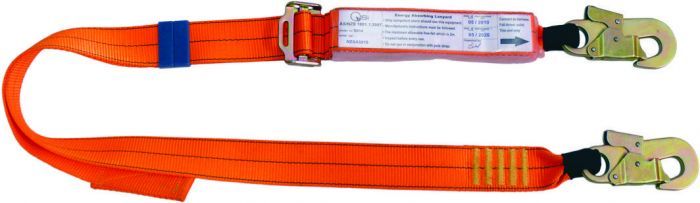 Adjustable Shock absorbing lanyard with double action hooks.