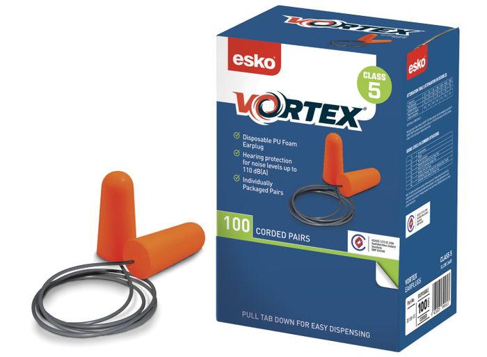 - Esko Vortex Disposable Corded Class 5 Earplugs SLC 80: 26dB Orange Box 200